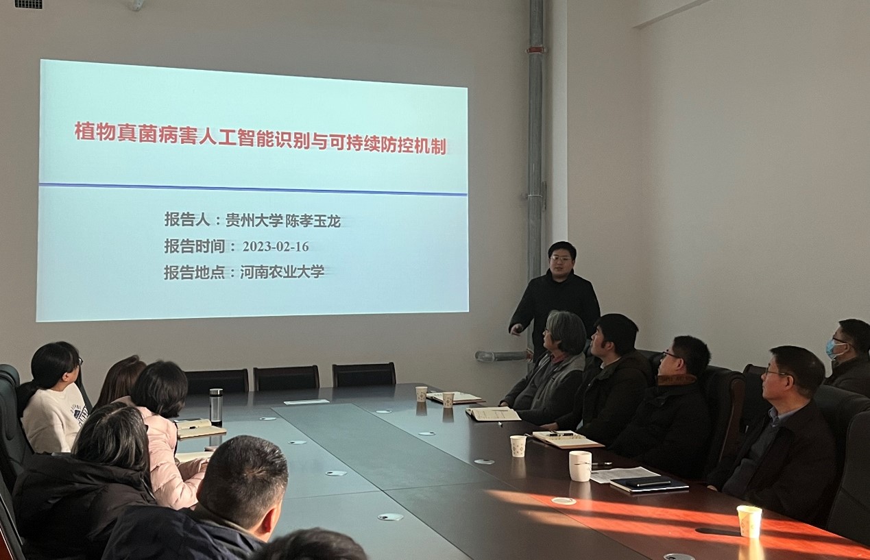 陈孝玉龙分享了团队独创的“T-PEI-IP”教学架构内涵及其实践成果,基于植物真菌病害人工智能识别与可持续防控机制指导大学生开展创新创业活动,成功研发了多个植物真菌病害人工智能识别工具,其作品荣获2022年第24届中国机器人及人工智能大赛全国决赛一等奖、2022年Robcom 机器人开发全国大赛(CAIA 数字创意全国总决赛)二等奖和第十三届“挑战杯”贵州省大学生创业计划竞赛一等奖,为成人动漫青年教师如何从实验室走向课堂、走向人才培养的模式创新以及开展交叉学科研究工作提供可借鉴的经验和指导。陈孝玉龙教授结合自己的科研工作,介绍了近年来团队在植物病害生物防治及生防资源发掘与应用方面的科研进展,从喜马拉雅洋葱、烟草、百香果等山地特色植物中挖掘出多种新型植物内生菌生物防治资源,深度解析了其重要的生防机制。同时,从植物病害三要素的新视角,解析了化学农药等环境因子对植物-微生物组的调控作用机理及其阻控技术。报告结束后,陈孝玉龙与参会教师围绕指导大学生开展创新创业活动、挑战杯竞赛、交叉学科研究选题,以及科研合作等问题进行了深入的探讨。