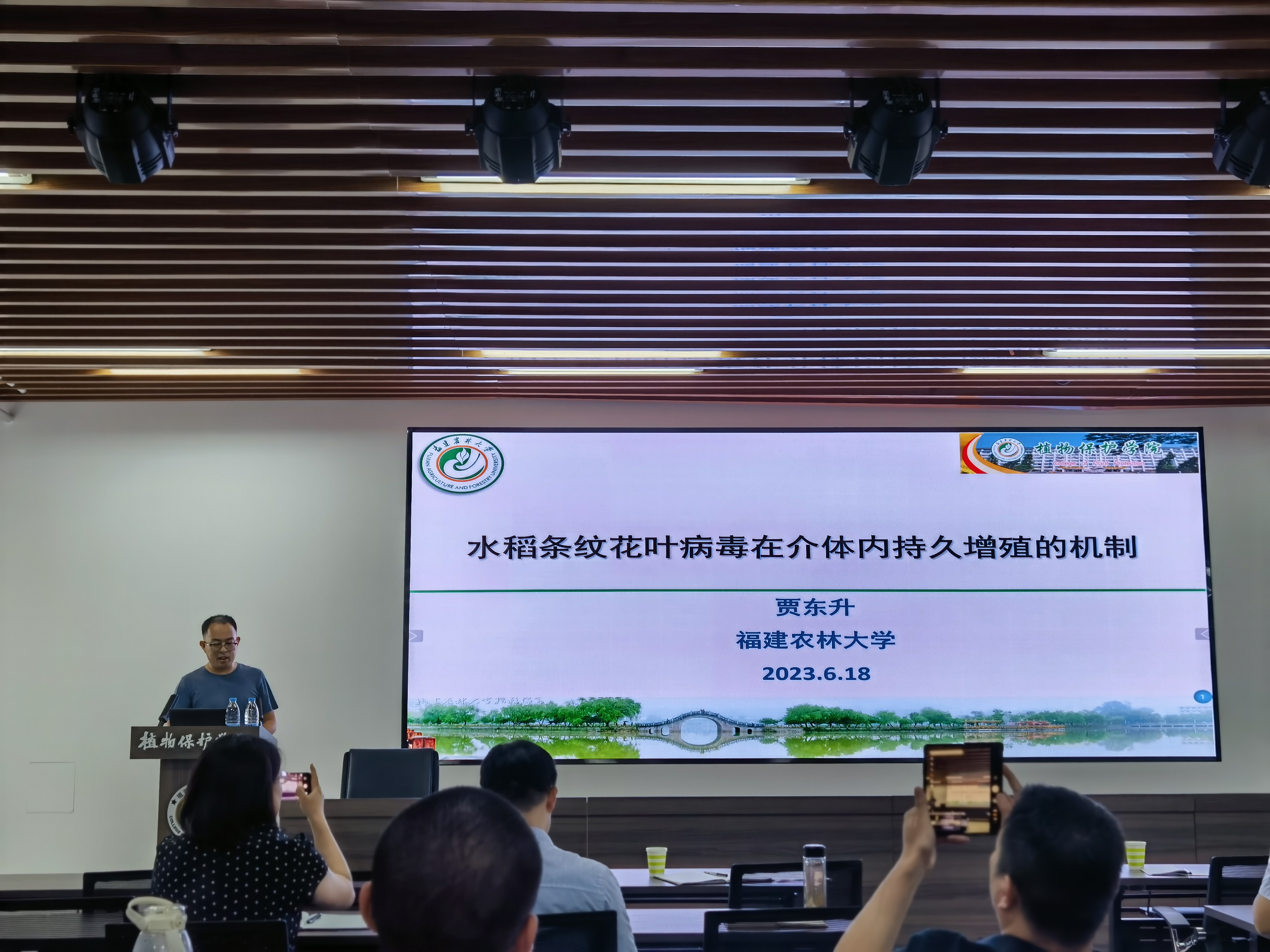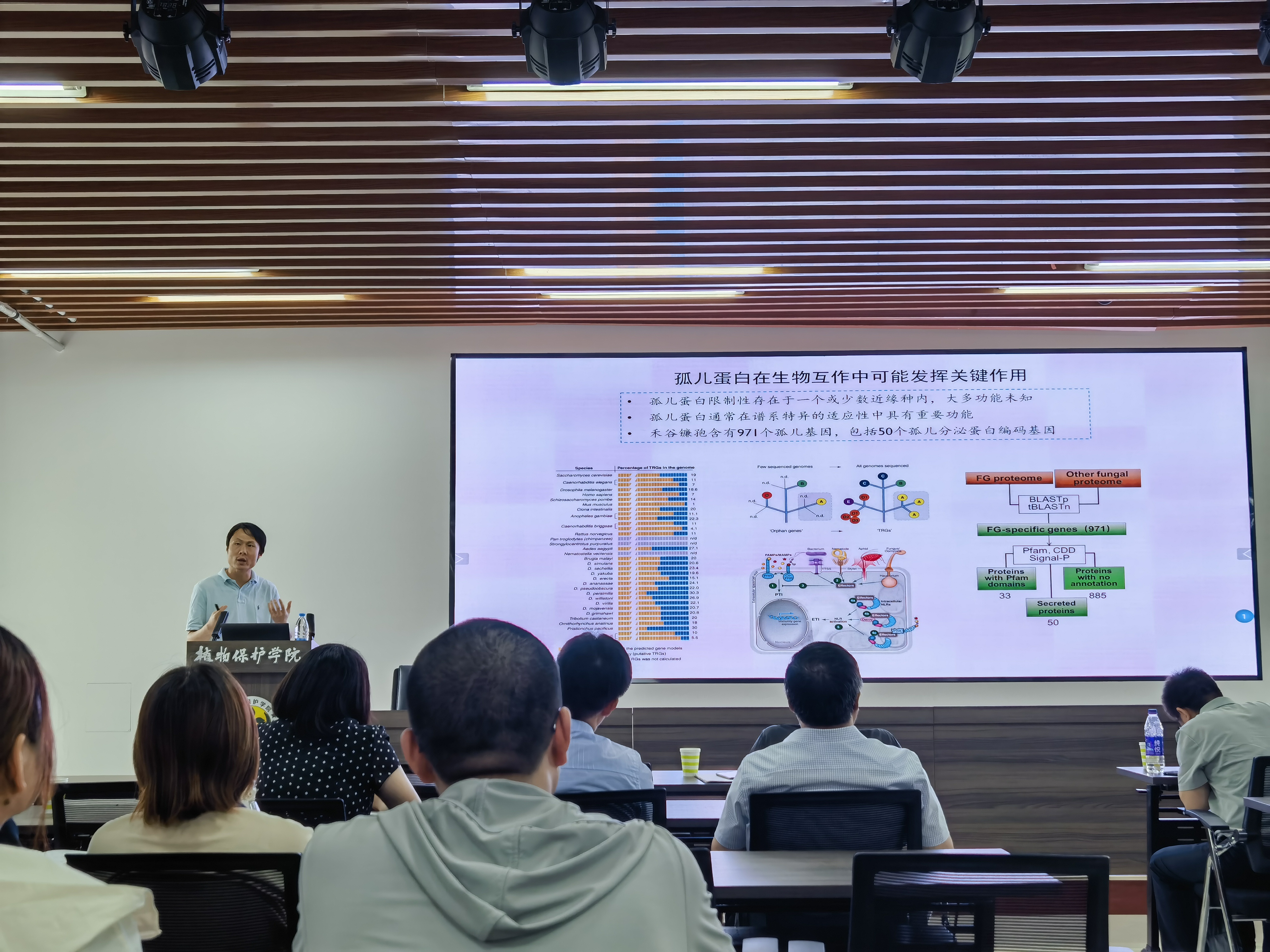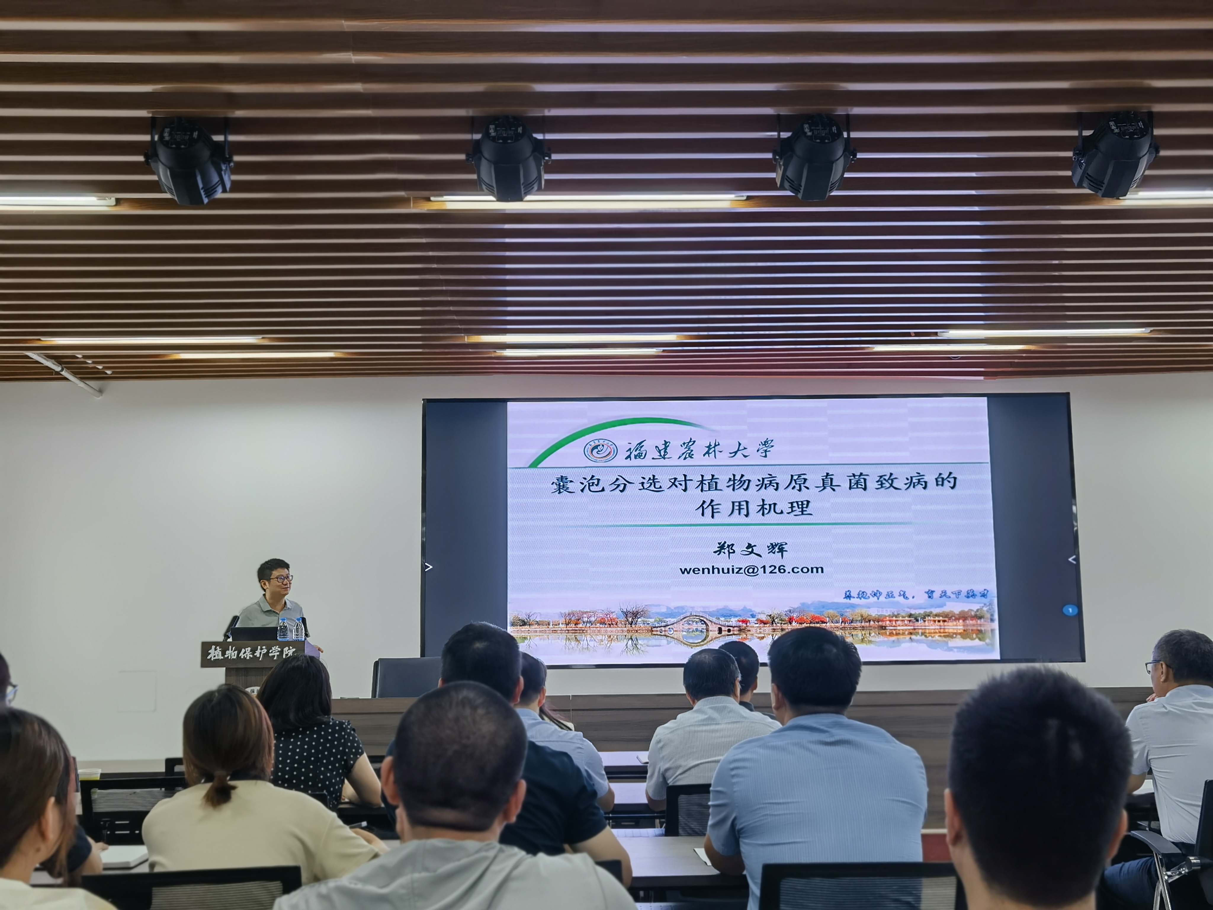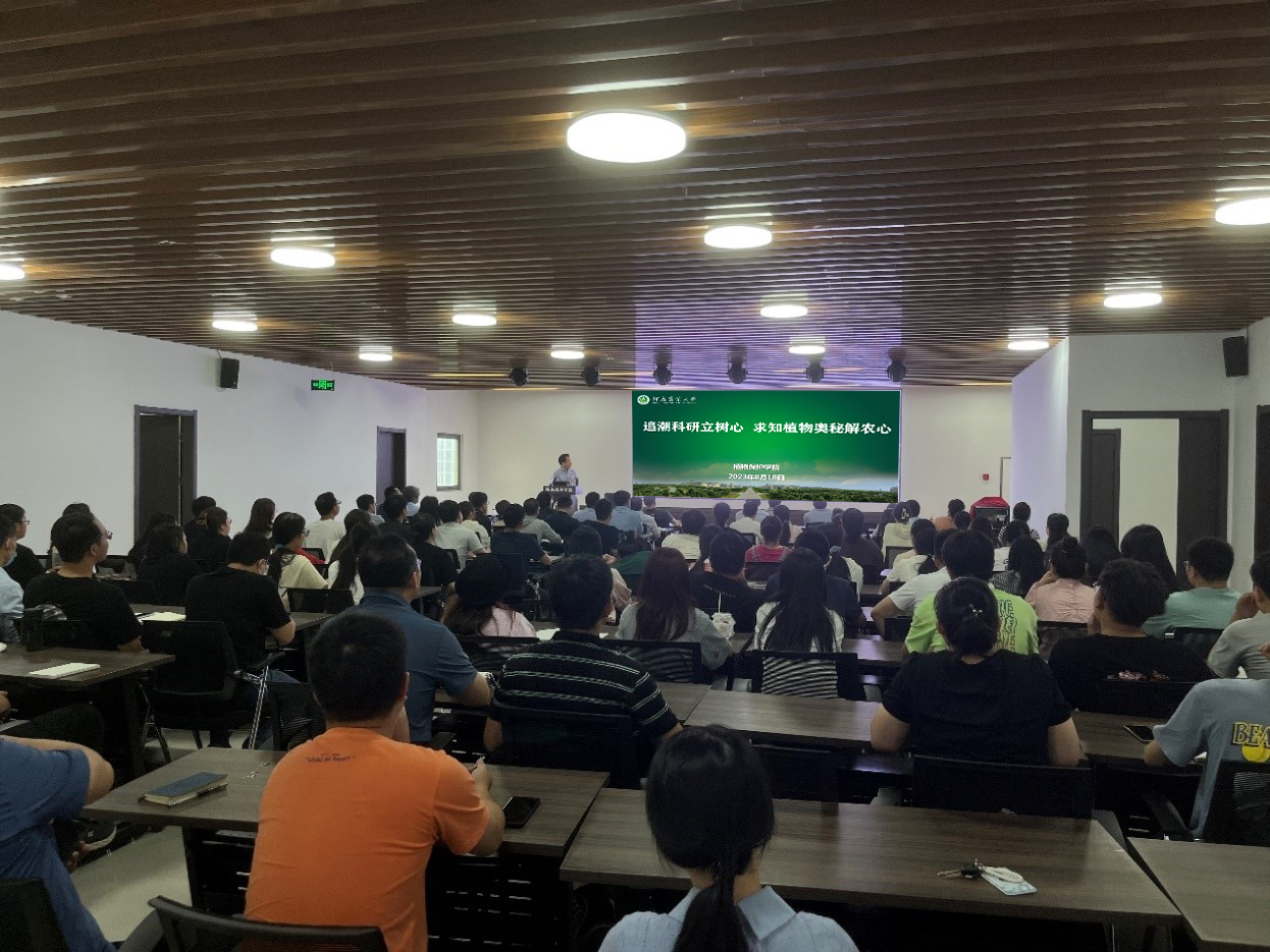 于第二实验楼开展以“追潮科研立树心,求知植物奥秘解农心”为主题的学术报告,近百位师生参加报告会,报告会由植物病理系孙炳剑教授主持。