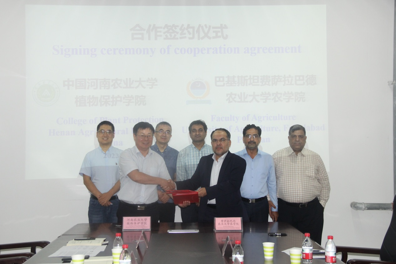 费萨拉巴德农业大学农学院和成人动漫 两学院签署了合作协议,在“一带一路”合作协议框架下,双方可共同制定合作计划,教学、培训、研究和其他商定的活动开展合作,进一步加强双方之间的合作关系。双方同意根据各自的科研和教学需求,在人才建设、教师和员工培养合作;通过公认的交流方案,开展学生交换、教学科研人员交流互访;开展学术信息和资料交流;在各自官方支持下,开展重大农作物有害生物绿色防控等研究项目合作;组织共同关心的专题讨论会、研讨会、讲习班、讲座、国家/国际会议、出版和研究活动。
