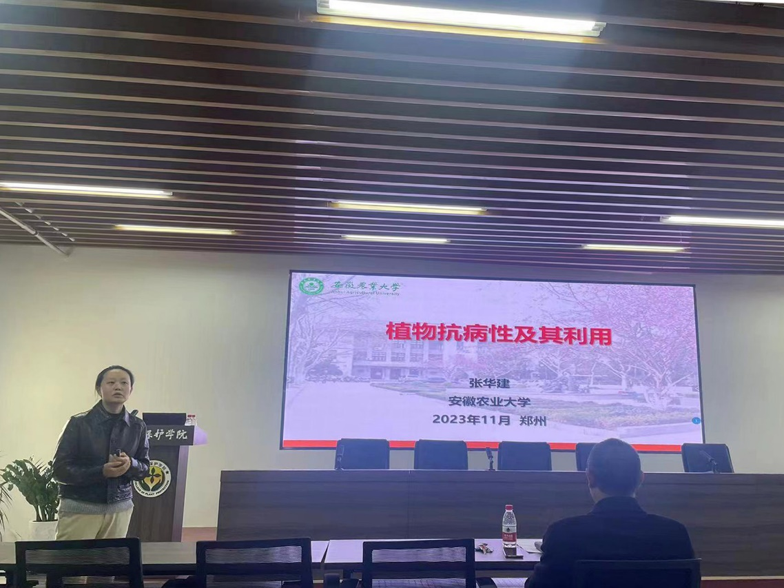 张华建教授的报告题目为“植物抗病性及其利用”,张教授首先指出病虫害严重威胁作物的安全生产,其中有害生物与寄主互作是病虫害发生的核心基础,而病害三角又为防病治病提供了理论依据。接着张教授介绍了植物抗病性、Zig-zag模型等内容。张教授结合自身科研经历系统的讲解了细菌侵染植物后如何激活寄主的气孔免疫和细胞凋亡免疫。张教授的报告内容丰富,见解独到,讲解生动,让与会师生受益匪浅。