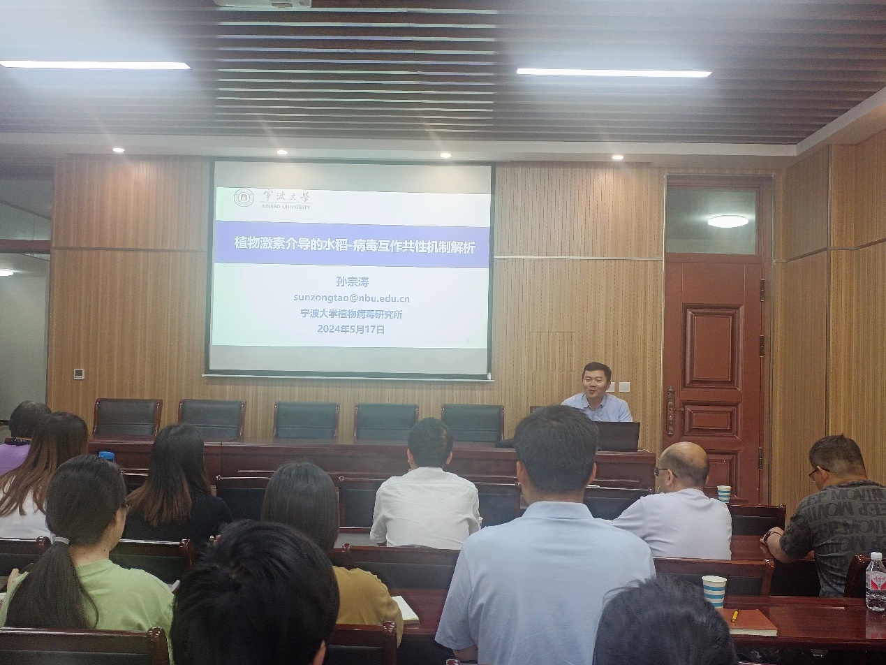 孙宗涛研究员作题为“植物激素介导的水稻-病毒互作共性机制解析”的学术报告
