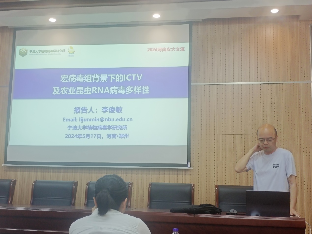 李俊敏研究员作题为 “宏病毒组背景下的ICTV及农业昆虫RNA病毒多样性” 的学术报告
