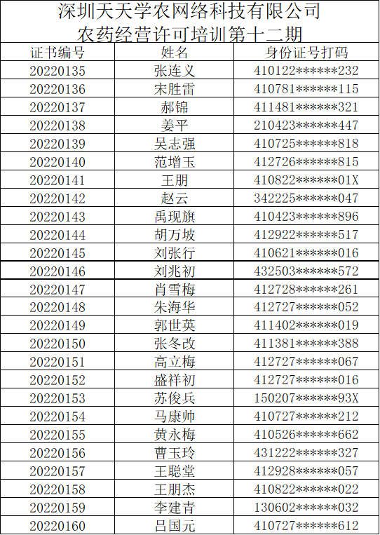 通过农药经营许可56学时线上培训考核的人员名单公示(第12期)