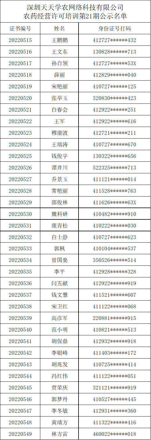 农药经营许可培训第21期公示名单 |