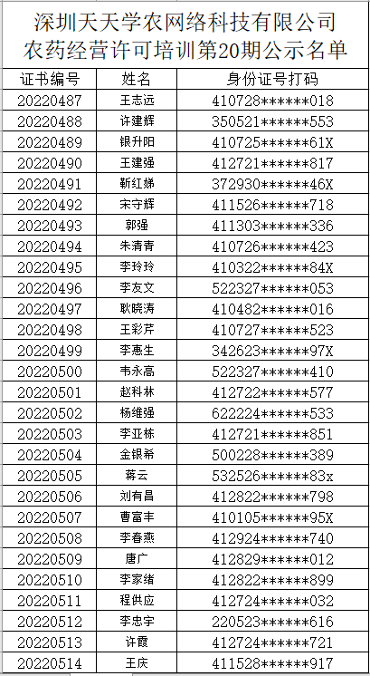 农药经营许可培训第20期公示名单 |
