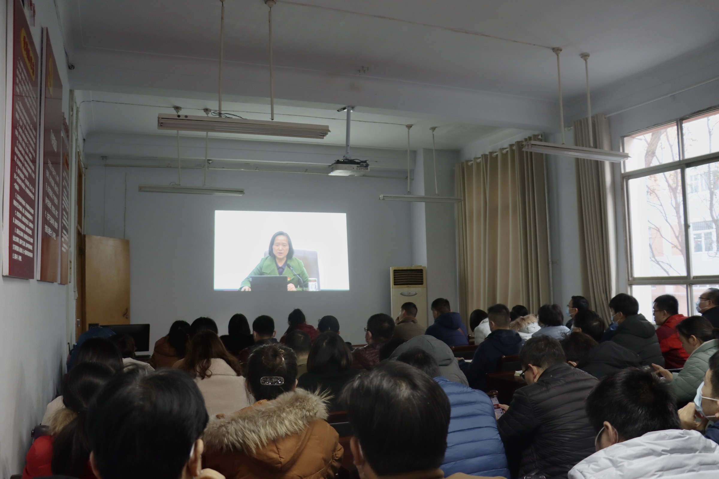 师生党员参加现场宣讲。成人动漫全体教职工、学生党员分别在文化路校区一号楼会议室、学术报告厅及图书馆报告厅通过线上直播聆听宣讲。