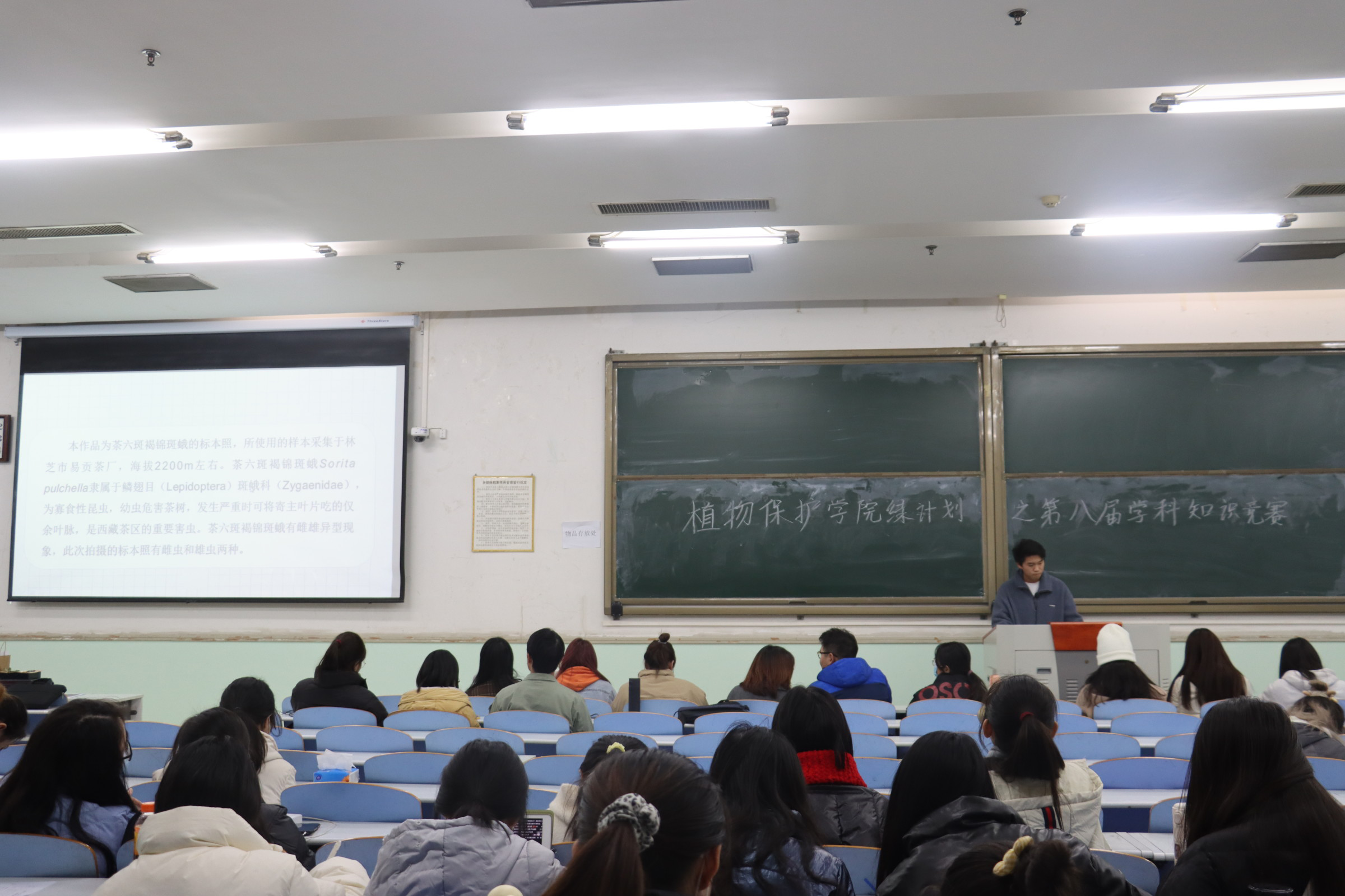 本届学科知识竞赛内容分为摄影、绘图、标本制作、工艺品、调研报告、微电影6类,共计319人次参与本届竞赛,共收集作品179份,其中有摄影类23份、绘图类90份、标本制作类23份、工艺品类15份、调研报告类6份和微电影类22份。在初赛环节,每组参赛选手依次从作品立意、设计理念、选题目的和意义等方面进行详细阐释。参赛作品创意十足,各具特色,选手们用独特的视角和灵巧的双手让大家对丰富多彩的动植物世界有了进一步的了解。