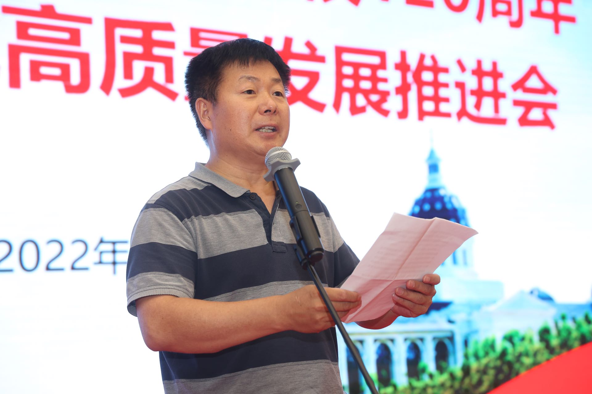 高质量发展推进会。校党委书记魏蒙关、副校长尹新明,学术副校长王道文及学校相关部门领导莅临指导,远在北京、上海及美国、英国、加拿大等国家的海内外校友纷纷发来贺信贺电,包括各级各界优秀校友代表、离退休教师代表、曾经在成人动漫