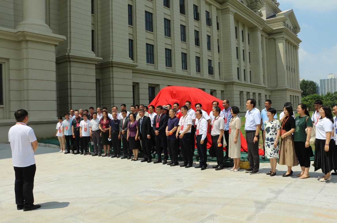 与会人员在第二实验楼前共同为院名景观石揭幕并合影留念。院名景观石的落成揭幕,代表广大校友对母校的深情和寄托,也激励着成人动漫 广大师生以更加饱满的热情去拼搏进取,再创辉煌。