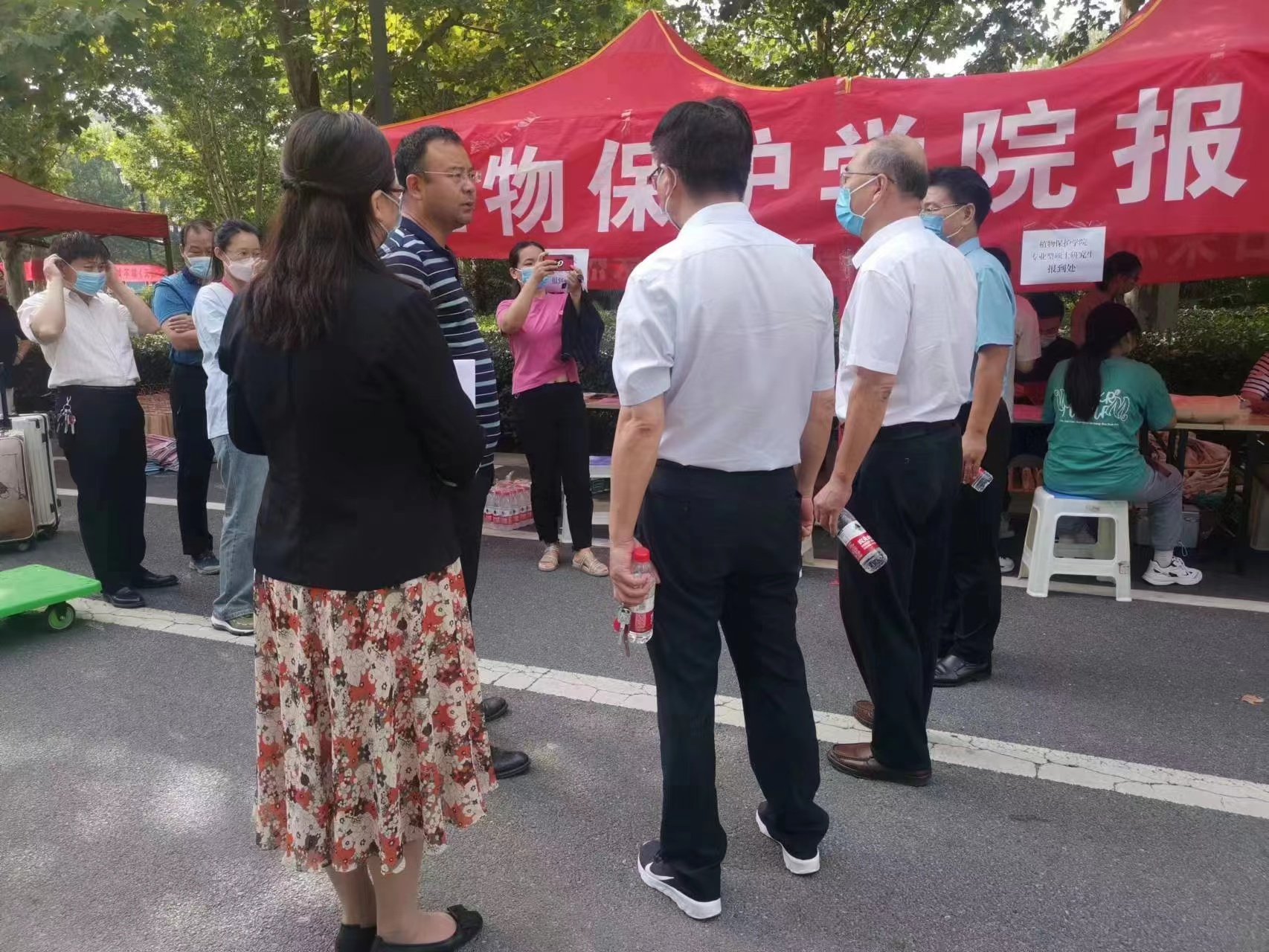 院党委副书记鲁兴向林同保副校长一行介绍研究生报到现场情况