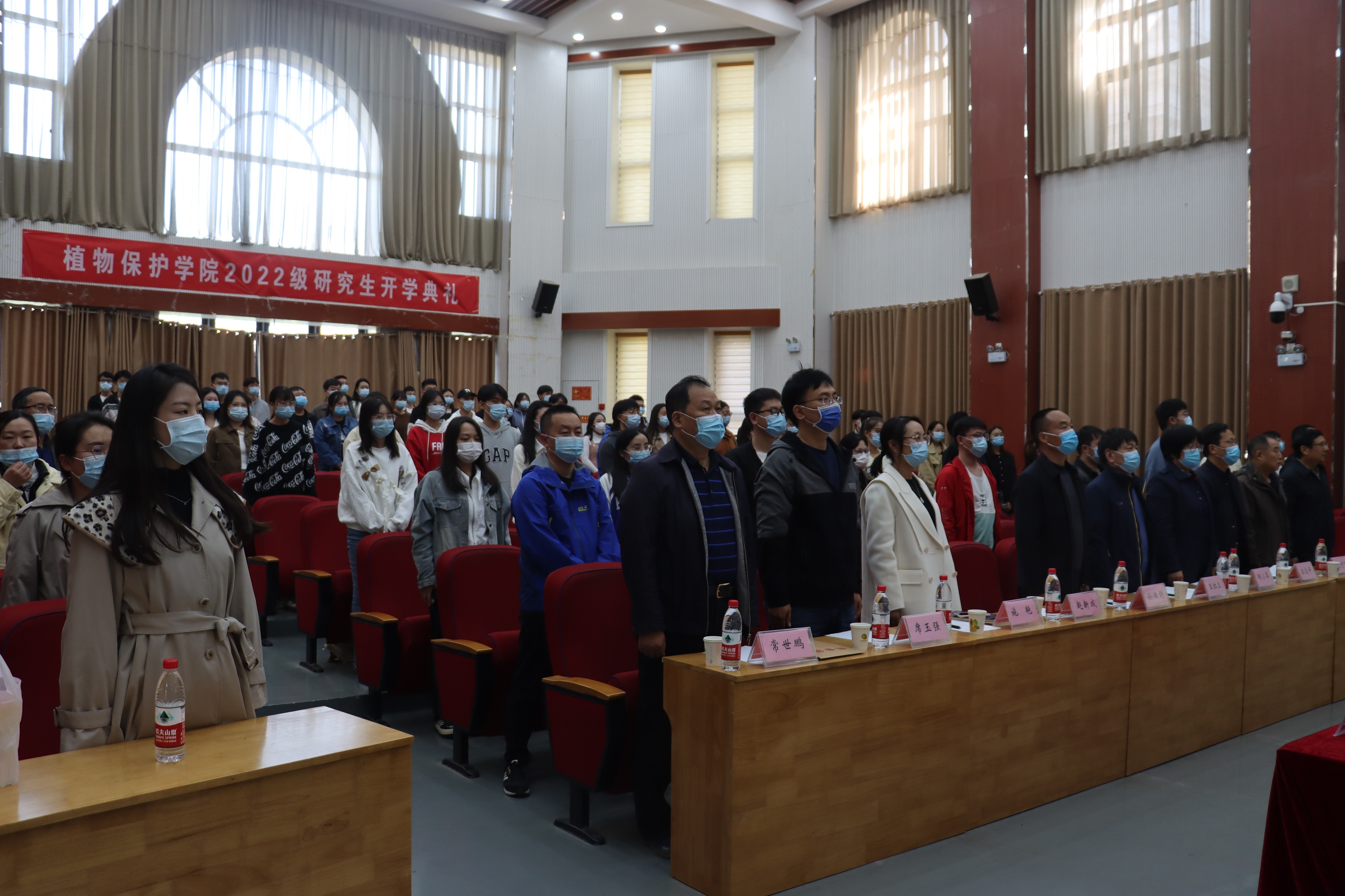 全体起立,奏唱国歌