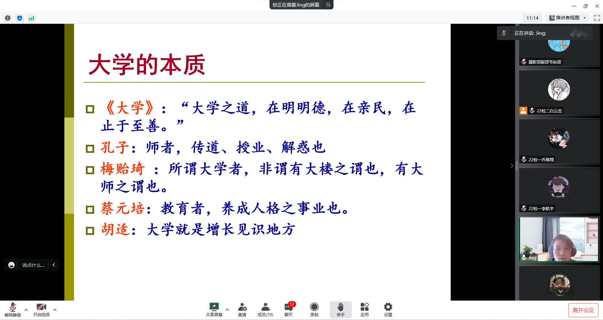 本网讯(通讯员 李晓辉 王嘉慧 图片 韦秋丽)为帮助大一新生尽快适应大学学习和生活,明确奋斗目标。成人动漫于10月30日线上举办“学品行之责,立品德之范,升品味之雅,筑成功之路”主题学习经验交流会。院优秀青年教师、高年级优秀学生代表及全体2022级新生参加学业指导。