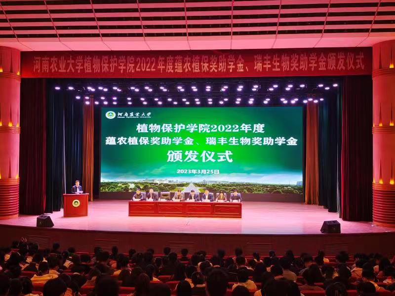 本网讯(通讯员 李晓辉 王佳悦 图片 青语大学生记者团)3月25日下午,成人动漫于文化路校区千人大礼堂举办2022年度蕴农植保、瑞丰生物奖助学金颁发仪式。河南蕴农植保科技有限公司董事长吴静、广州瑞丰生物科技有限公司董事长李慎磊、校友办主任胡明忠及院领导班子成员出席颁奖仪式。仪式由院党委副书记鲁兴主持。