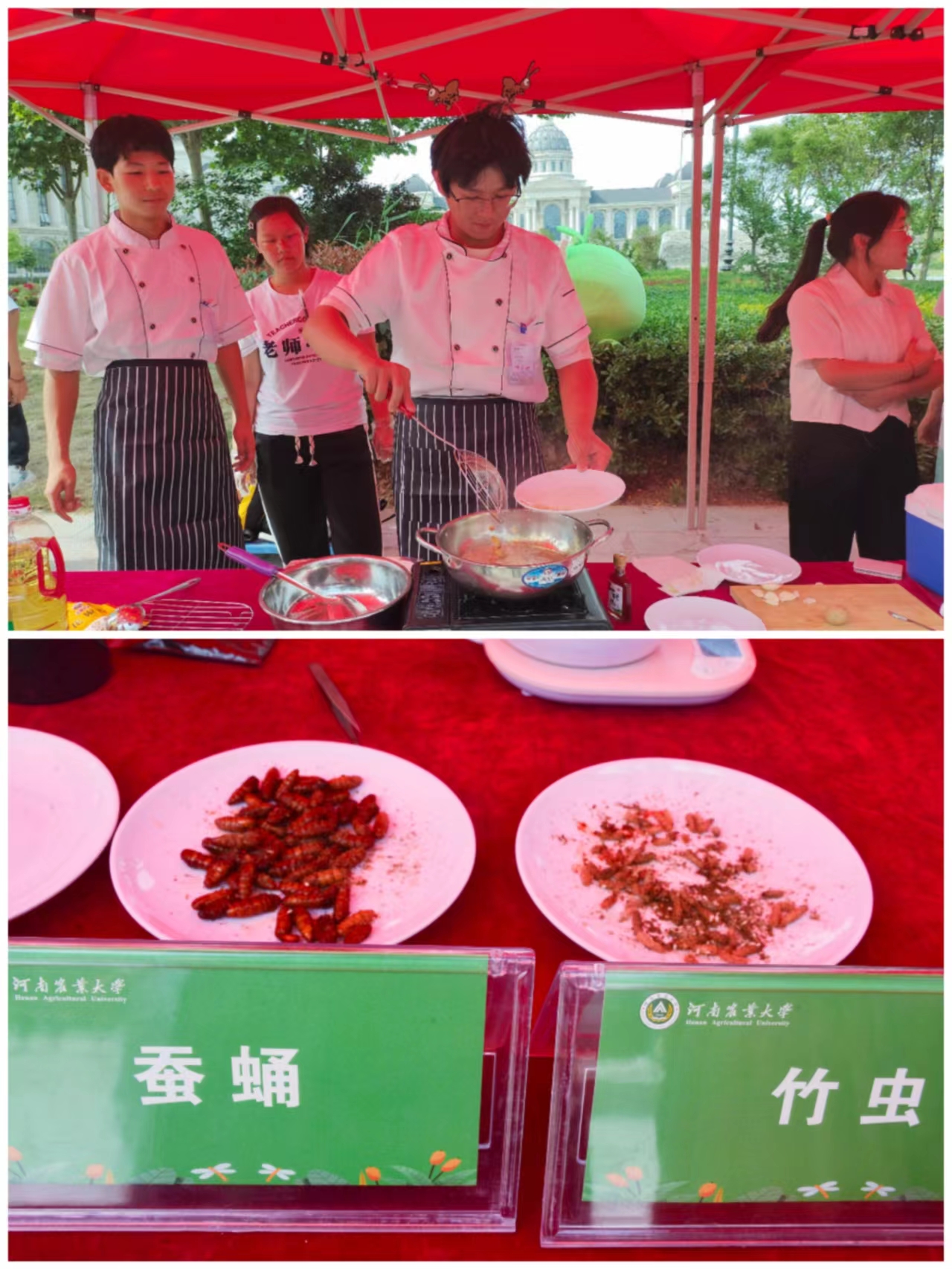 学科的特色和魅力。科普长廊和书画摄影区让同学们对专业知识有了更深入的了解。游戏区和创意手工DIY活动增加了整场活动的趣味性,调动了学生们的积极性。美食区的昆虫宴和昆虫茶饮让同学们真正体会到了昆虫之味,非遗糖画制作体验更是大受追捧。活动现场热闹非凡,广大师生积极参与其中。