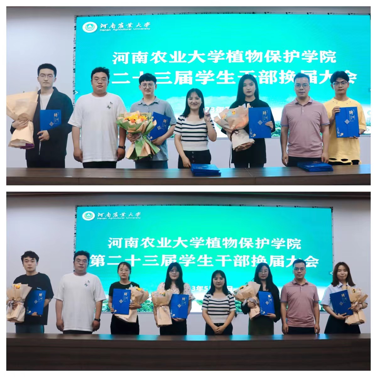 黄姗姗、李晓辉、王赟飞为第二十二届学生干部成员颁发聘书并合影留念,充分肯定了大家在工作中的优秀表现。