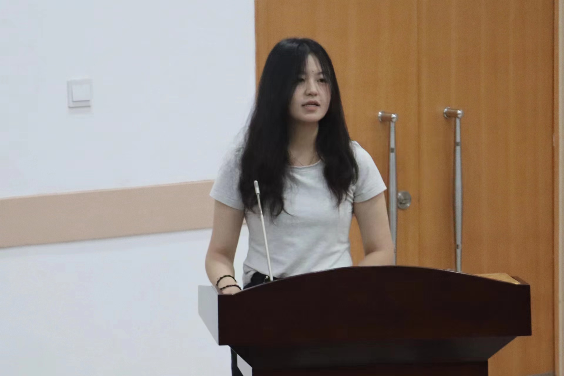 社会实践学生代表刘倩瑜上台发言,她分享了自己对社会实践活动经历的看法与感受,表示要把所学知识融入到社会实践的大课堂,利用所学服务社会,磨炼自我意志;承诺在社会实践中努力做到遵守纪律、克服困难、提升技能、诠释担当。