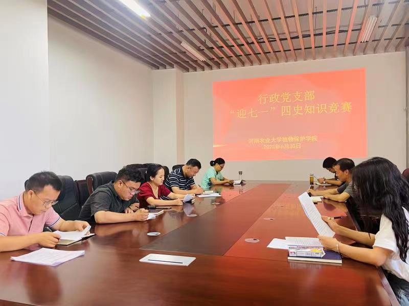 本网讯(通讯员 杜文慧 图片青语大学生记者团)6月30日下午,成人动漫行政党支部于龙子湖校区第二实验楼2中209会议室举办迎“七一”四史知识竞赛。院行政支部全体党员参加知识竞赛。