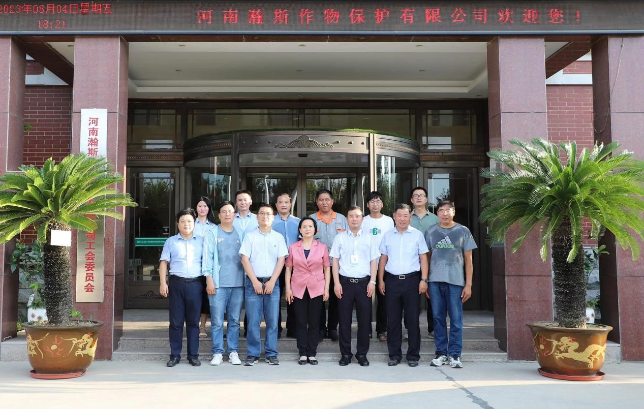 尹新明一行考察了瀚斯农药企业,交流病虫害防控药剂生产情况。