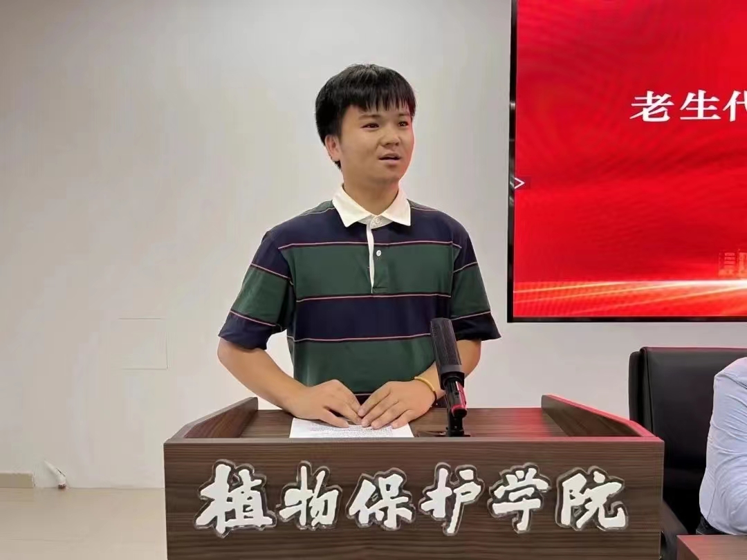 2021级博士生代表孙龙龙从底蕴与传承出发,号召同学们扎根沃土,厚生丰民,把论文写在祖国大地上;薪火相传,坚定初心,蓄力接棒争做植保接班人;绽放青春,艺馨芳妍,努力成为多姿多彩植保科研人。