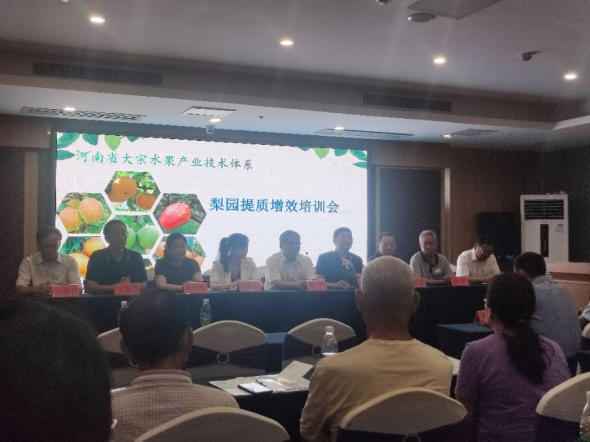 根据目前梨产业生产中存在的主要问题,促进梨园提质增效,国家梨体系育种岗位专家杨健研究员、河南省大宗水果产业技术体系植保岗位团队成员刘晓光副教授进行了“梨低效园改造”、“酥梨病虫害绿色防控”等内容的技术培训,内容丰富、实用,时间紧凑、高效。