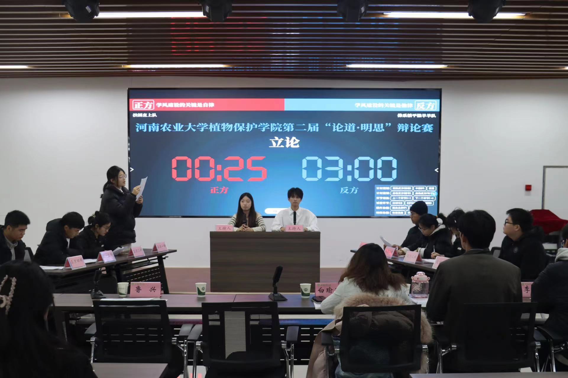 本网讯(通讯员 王梦涛 图片 申师贞)12月10日下午,成人动漫第二届“论道·明思”学风辩论赛决赛于龙子湖校区第二实验楼六楼植保活动中心顺利落下帷幕。院党委书记李兴道、院党委副书记鲁兴、院团委副书记白瑜瑾以及教师代表担任本次比赛评委。