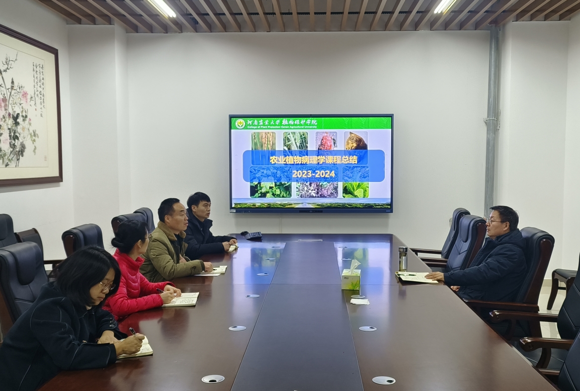 专业核心主干课程《农业植物病理学》的教学工作,提升教学效果。1月23日上午,成人动漫于第二实验楼209会议室举办《农业植物病理学》2023-2024年度教学总结会,教学团队负责人李洪连教授及全体成员参加会议。