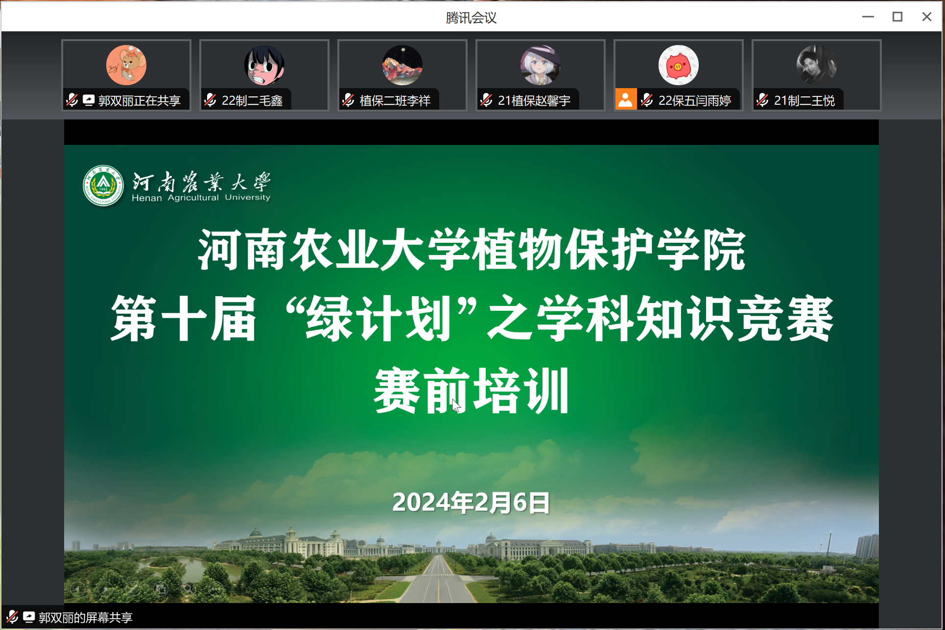 本网讯(通讯员 王梦涛 图片 毛鑫)为帮助成人动漫学生做好第十届绿计划之学科知识竞赛准备,加强专业技能和创新实践能力培养,全方位了解竞赛内容,2月6日下午,成人动漫组织线上召开第十届绿计划之学科知识竞赛赛前培训。教师代表翟卿出席本次会议,成人动漫各级有意参赛的学生参加此次培训,会议由学生会学实部部长郭双丽主持。