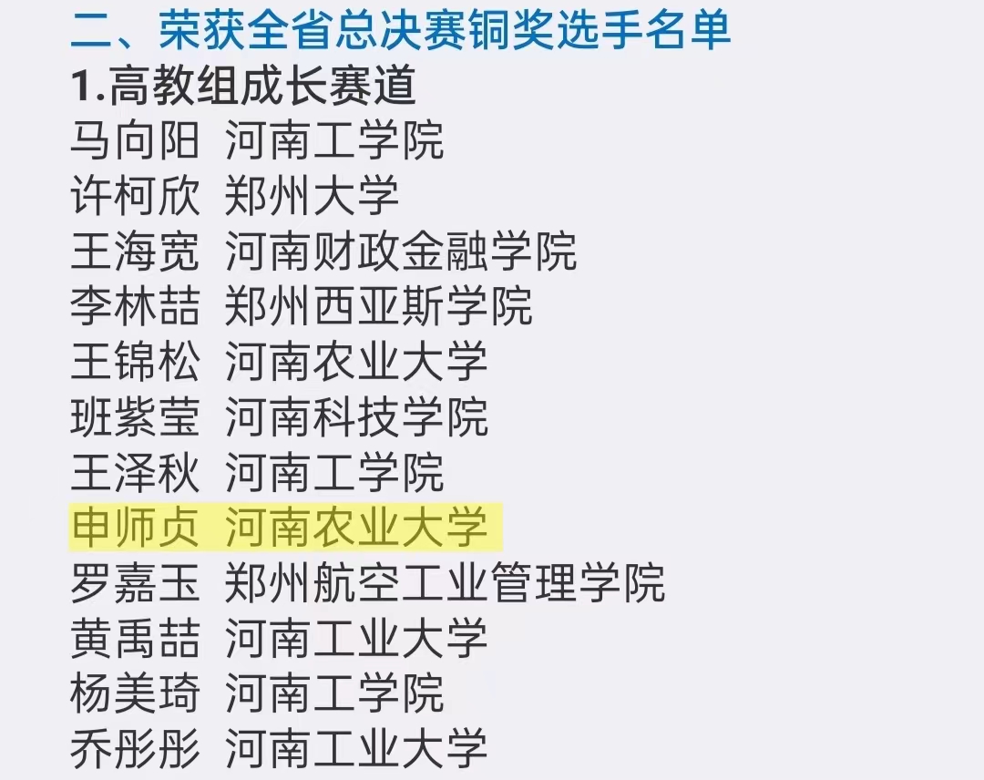 本网讯(通讯员 杜文慧)按照河南省教育厅办公室《关于举办首届全国大学生职业规划大赛河南省决赛有关事项的通知》精神,3月4日至5日,河南省赛郑州分赛区比赛在河南工业大学圆满落下帷幕。经过现场展示、专家评审,成人动漫申师贞同学在大赛中脱颖而出,荣获全省高教组成长赛道总决赛铜奖。