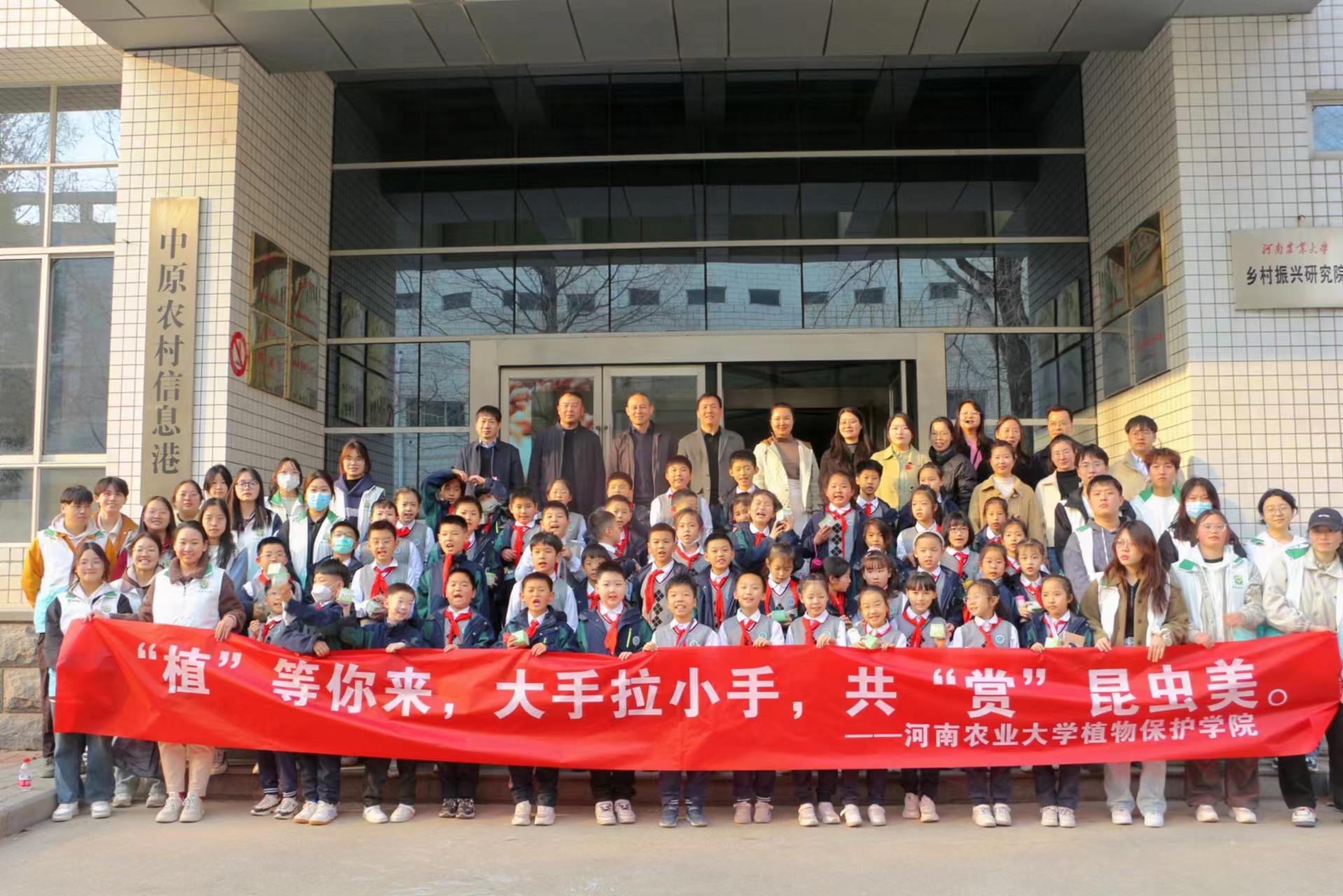 师生带领附属中学小学师生参观了昆虫标本馆和校园植物园,丰富多样的昆虫标本和绿色植被,让师生们领略了大自然的魅力,充分感受到昆虫与植物的神奇与美丽,感受到了自然的神奇力量,激发了学生探索自然奥秘的兴趣。