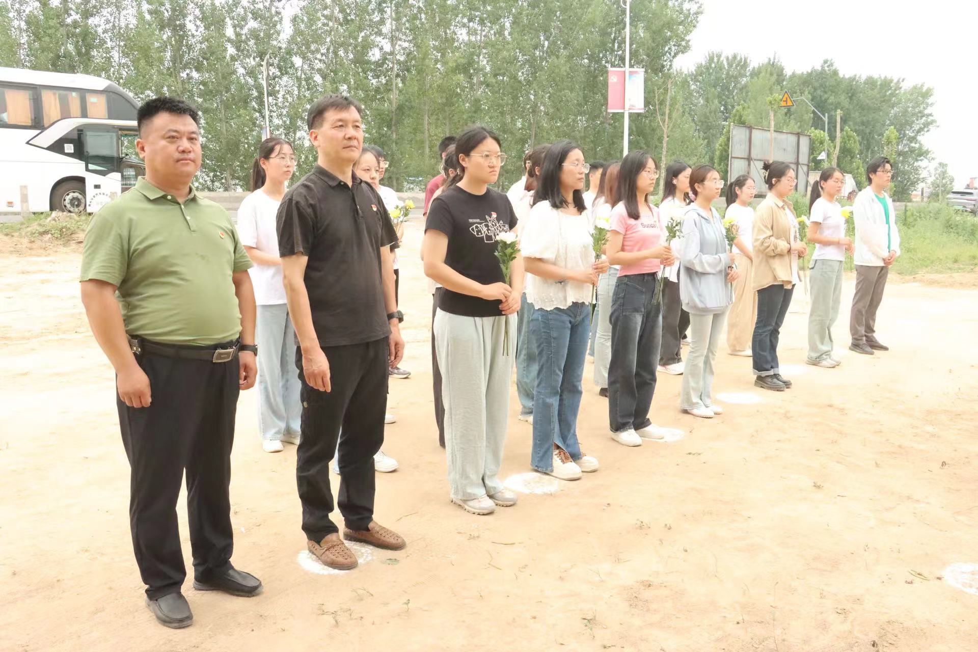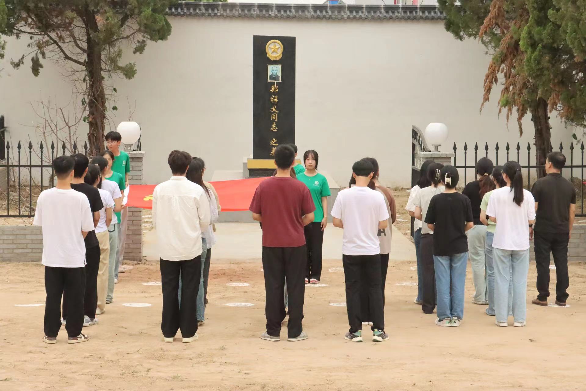 全体师生党员表情庄严,整齐列队在郑祥义老师墓碑前,脱帽默哀三分钟。