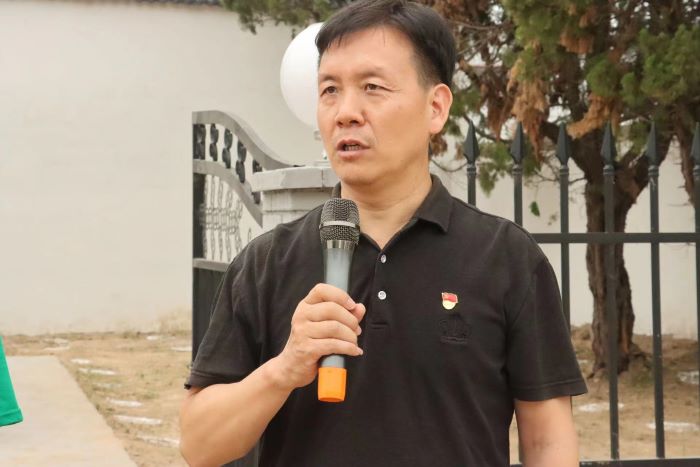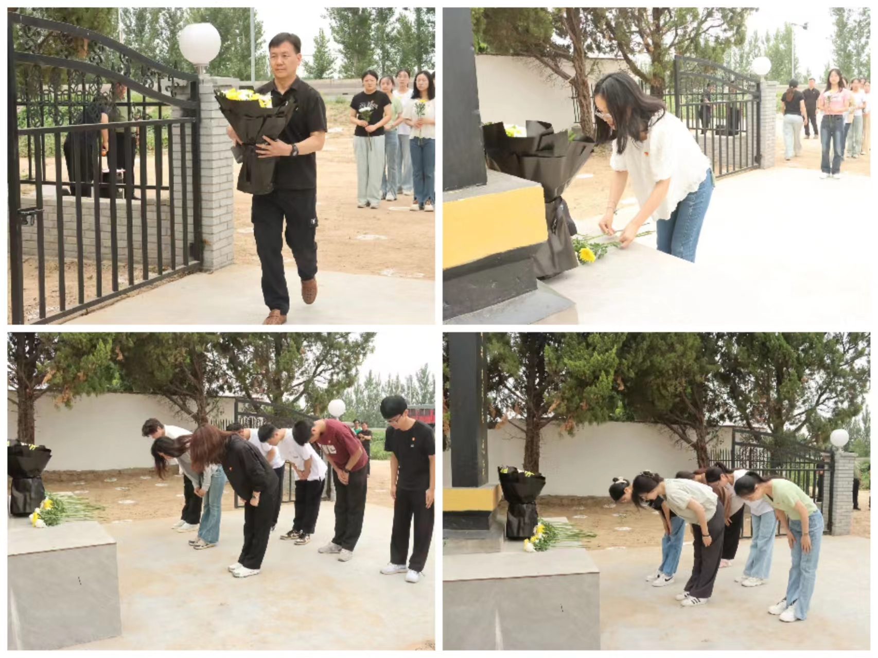 李兴道及学生党员依次上前敬献鲜花,鞠躬并缓步绕行瞻仰,以此表达对郑祥义老师的深切缅怀和崇高敬意。