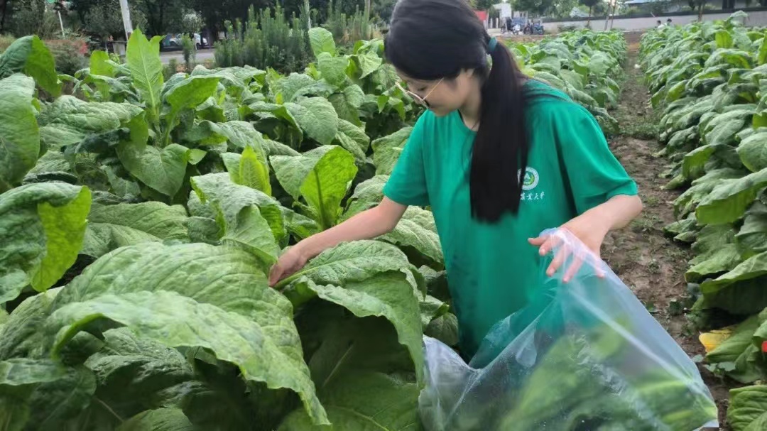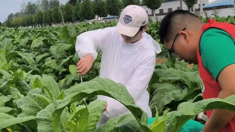崔江宽团队成员深入乡村烟草大田,调查当地烟草育苗情况与病虫害问题。团队通过观察烟草长势与叶片特征,筛选出发病植株,采集病株与烟草土样后,在实验室对样品进行进一步研究。在探明烟草病害后,崔老师带领团队与农户沟通,指导科学种植烟草与防治常见病害的方法,帮助农户解决种植问题。随后,该团队一同前往毛主席视察纪念馆,参观了解毛主席生平,聆听老前辈们的艰苦奋斗历史,增强国家意识,继承革命精神,将爱党爱国精神铭刻在心中。