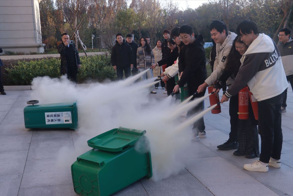 教学实操环节,刘顺齐手持灭火器分步讲解检查压力、拔销、对准火源根部按压喷射的操作要领以及覆盖灭火的精准技巧,邀请师生上手实操,及时纠正错误动作,使与会师生熟练掌握灭火技能。