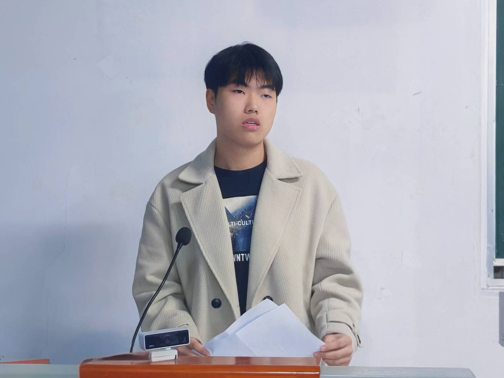 学生代表张佳鑫分享期末考试备考建议,她号召大家考前要提前复习、认真复习,倡导自主学习,制定清晰的备考计划。学生代表周子昊则强调要合理利用网络资源,贴合课本内容,并结合课堂教学重点,实现高效备考,提高学习效率。