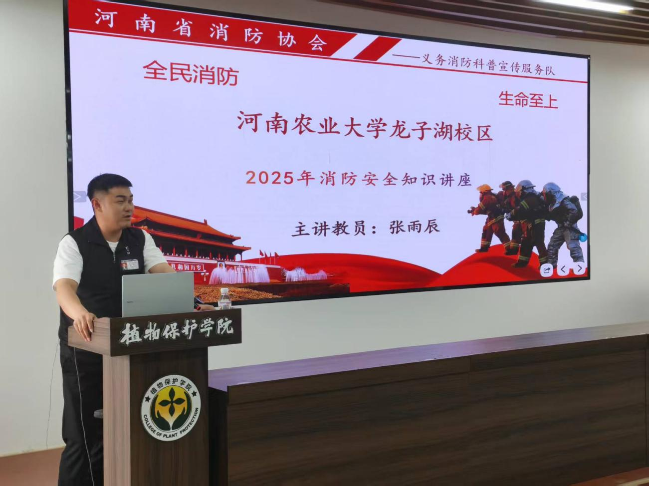 本网讯(通讯员 熊黛冰 图片 青语大学生记者团)4月8日下午,成人动漫联合校保卫处于龙子湖校区第二实验楼六楼报告厅举办校园安全讲座。河南省消防协会张雨辰,校保卫处吴旭辉、周成伟应邀为成人动漫师生作专题讲座,22级、23级学生代表及各年级辅导员参加会议,会议由团委书记黄姗姗主持。