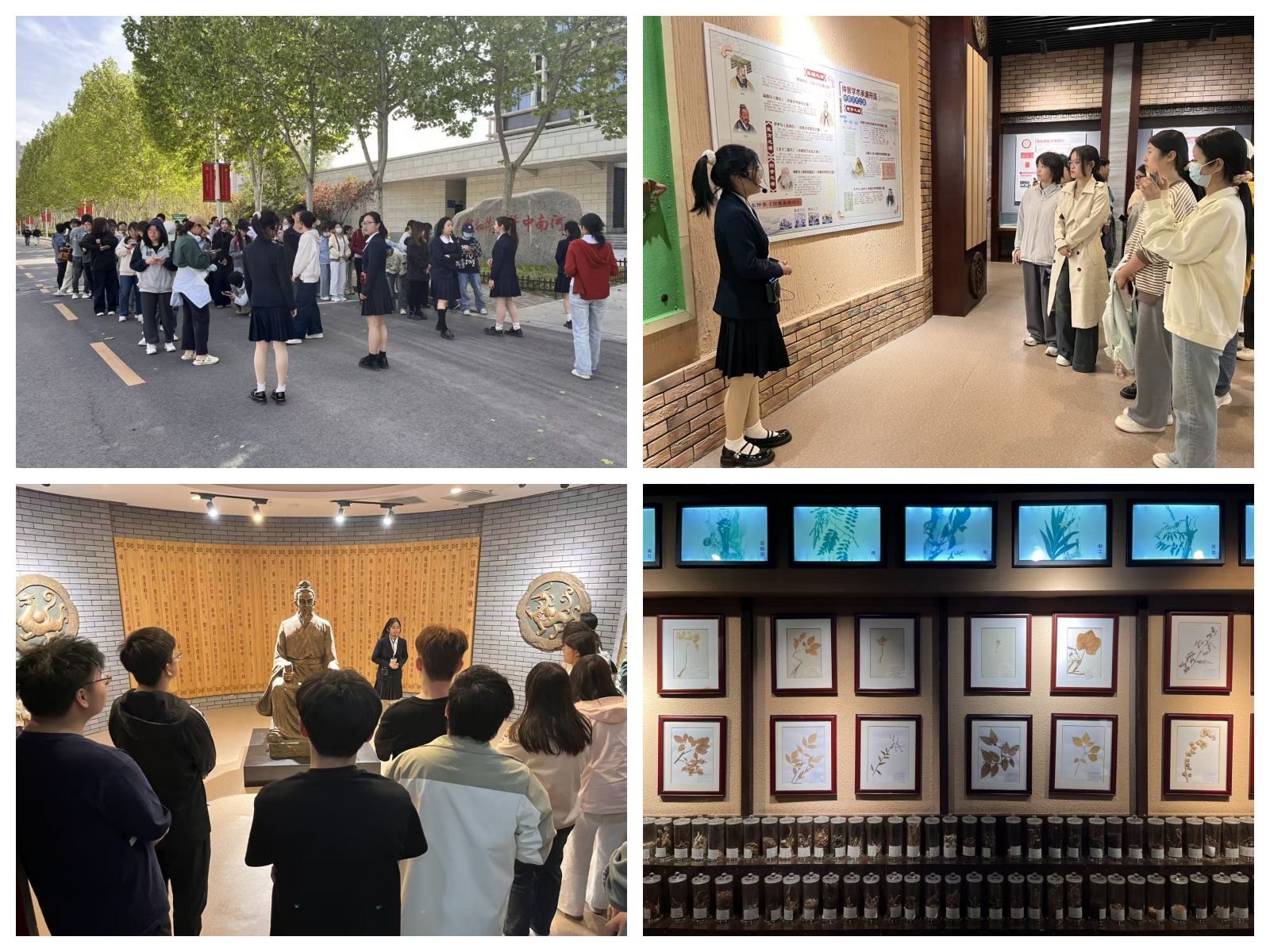 在河南中医药大学专业讲解员的引领下,同学们有序参观了校史馆、医史馆、仲景馆、中药馆、中药房以及标本馆。在校史馆和医史馆中,同学们追溯了中医药学的悠久历史,领略了历代医学大家的卓越贡献;步入仲景馆,大家深入了解了张仲景等中医名家的学术思想与临床成就。在中药馆与中药房内,丰富的中药材标本和炮制过程展示,让同学们直观感受到了中药材的多样性,也意识到很多杂草在中医药领域有着重要用途,从成人动漫