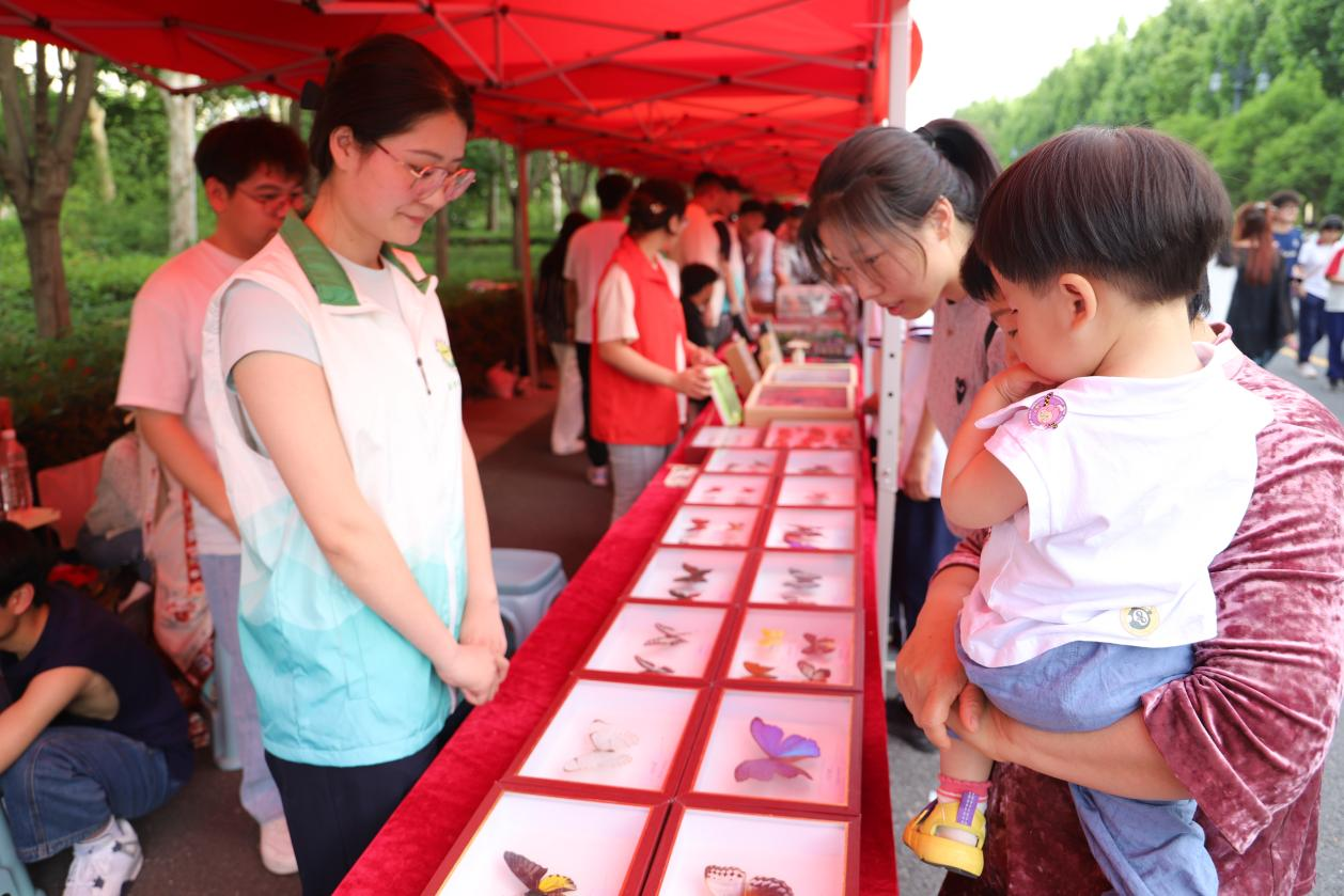 本次活动共设置七个功能展示区,分别为河南省主要农作物病害及防治区、青少年科普营地、升级版“昆虫宴”、虫鸣市集、萌宠领养计划、游戏区和文创兑换区。每个区域都别具一格,给参与师生带来新奇的体验。