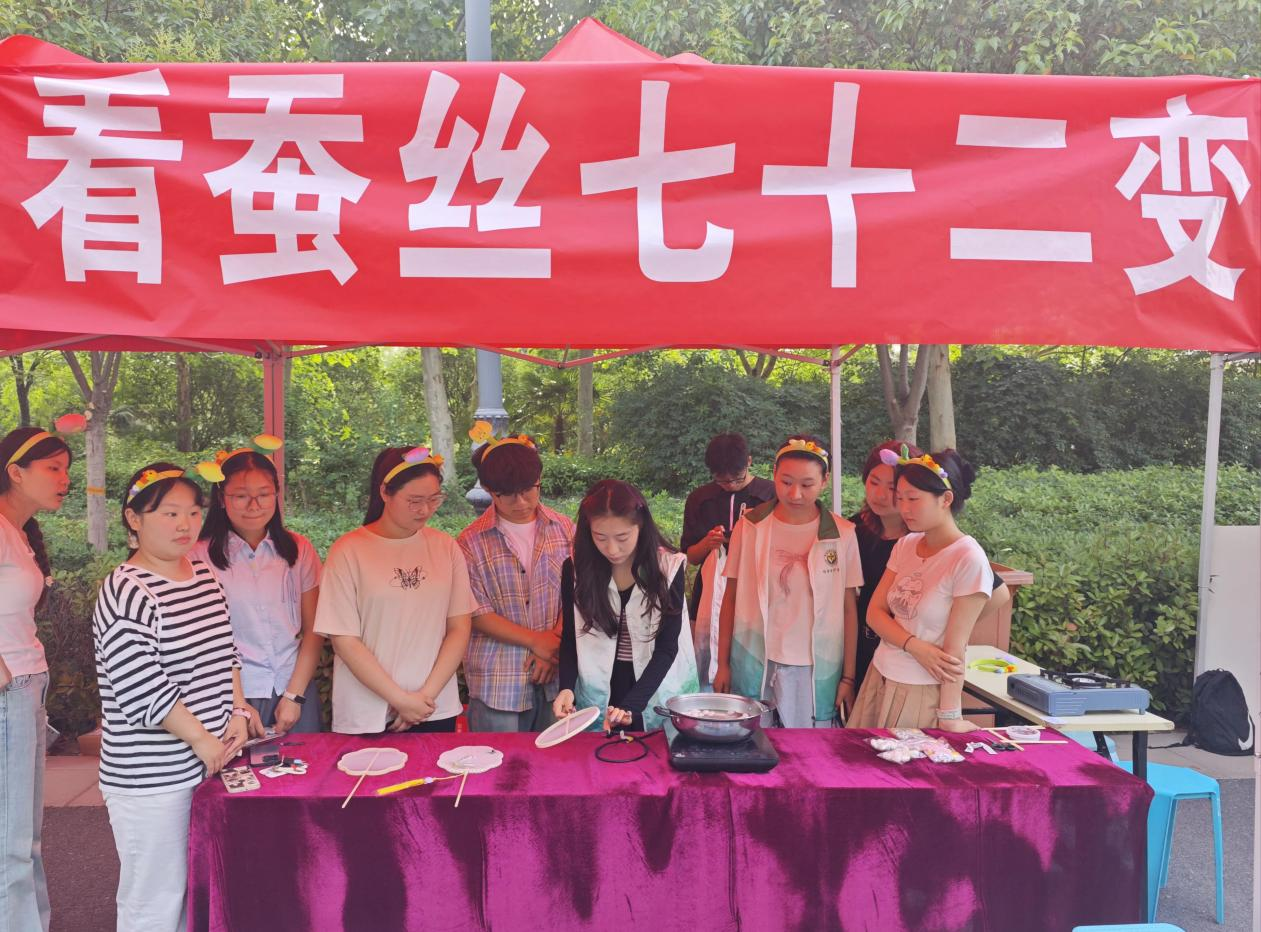 萌宠领养计划展出精美蚕丝扇制作工艺,还可以现场领养蚕宝宝,引来广大师生前往驻足观看。