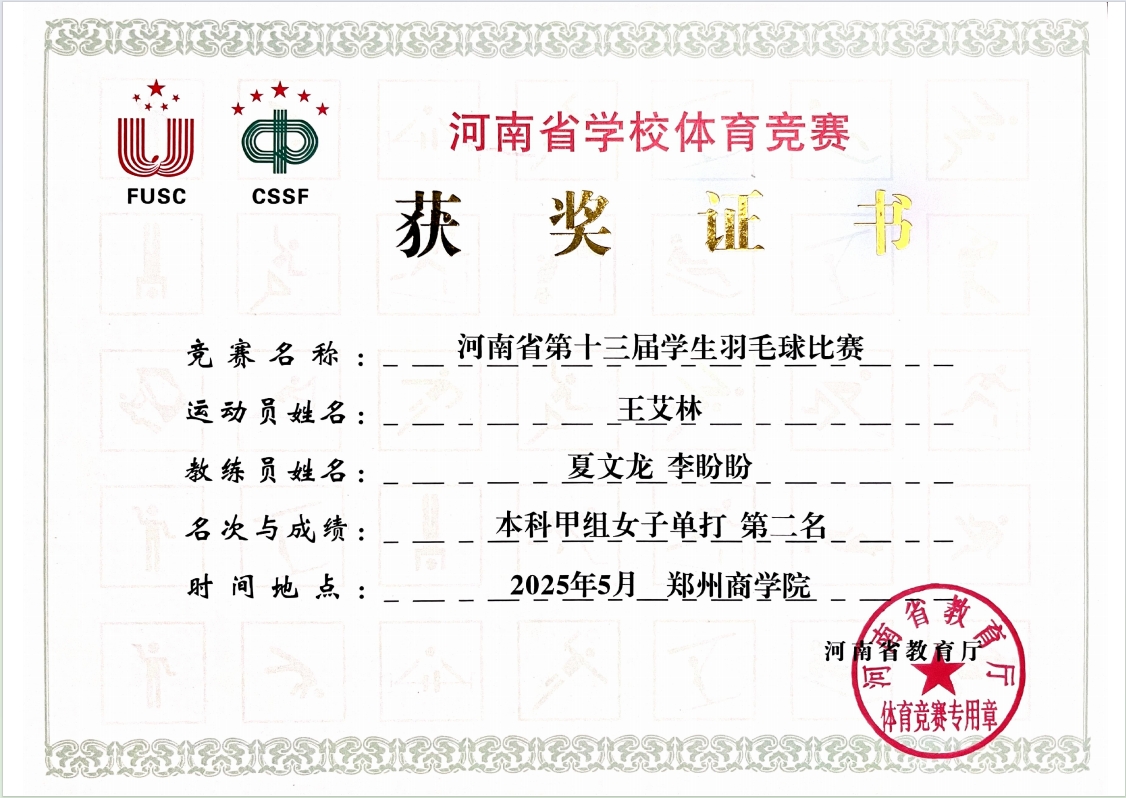 落下帷幕。成人动漫2022级学生王艾林表现亮眼,勇夺本科甲组女子单打第二名,助力学校荣获本科甲组女子团体第六名。