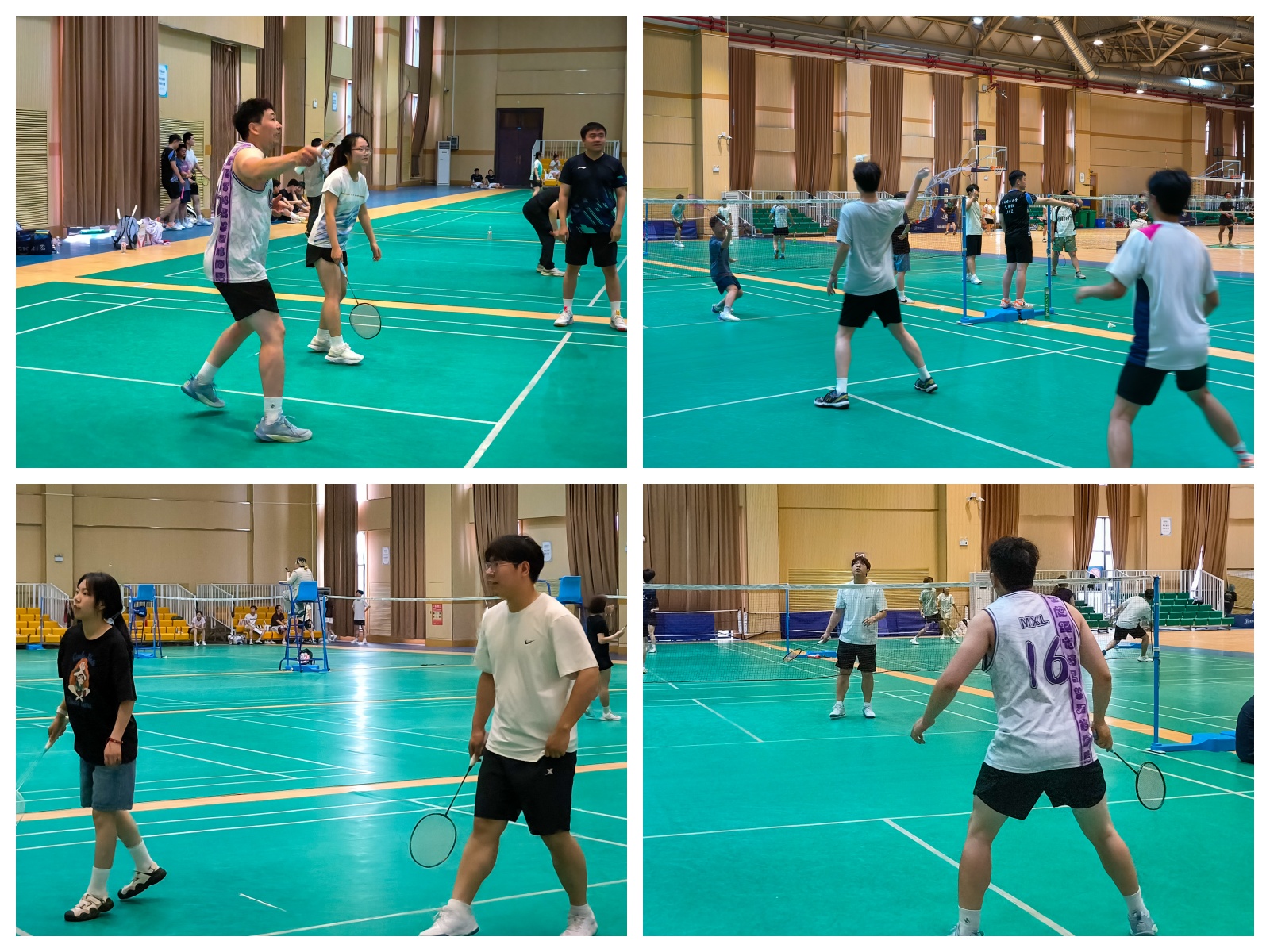 比赛设男单、女单、混双、男双、女双五个项目,赛场上选手们挥拍跃动、奋力拼搏,高远球、扣杀、吊球等精彩动作频现。学生组男子单打的比赛迅速点燃赛场气氛,选手们凭借精湛的球技与顽强的斗志展开激烈角逐;教工组男子单打老师们以稳健的发挥展现别样风采。双打比赛同样扣人心弦,选手间默契配合,高远球、扣杀、网前小球等精彩瞬间频现。赛程推进,女子单打决赛、男女双打决赛以及男子单打、双打终极对决相继上演,参赛选手全力以赴,将比赛推向高潮。赛事全程严格遵循既定流程,现场裁判专业执裁,参赛选手提前到场签到热身,观赛师生自觉维护秩序,共同营造了文明、热烈的竞技氛围。
