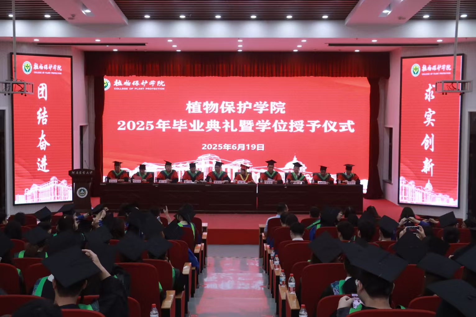 院领导、学位委员会成员为2025届优秀毕业生颁发荣誉证书,为全体毕业生一一拨正流苏,颁发学位证书。希望受表彰的毕业生志存高远,坚守初心;明德笃行,恪守底线;勇毅担当,不畏挑战,用奋斗书写人生绚丽华章。