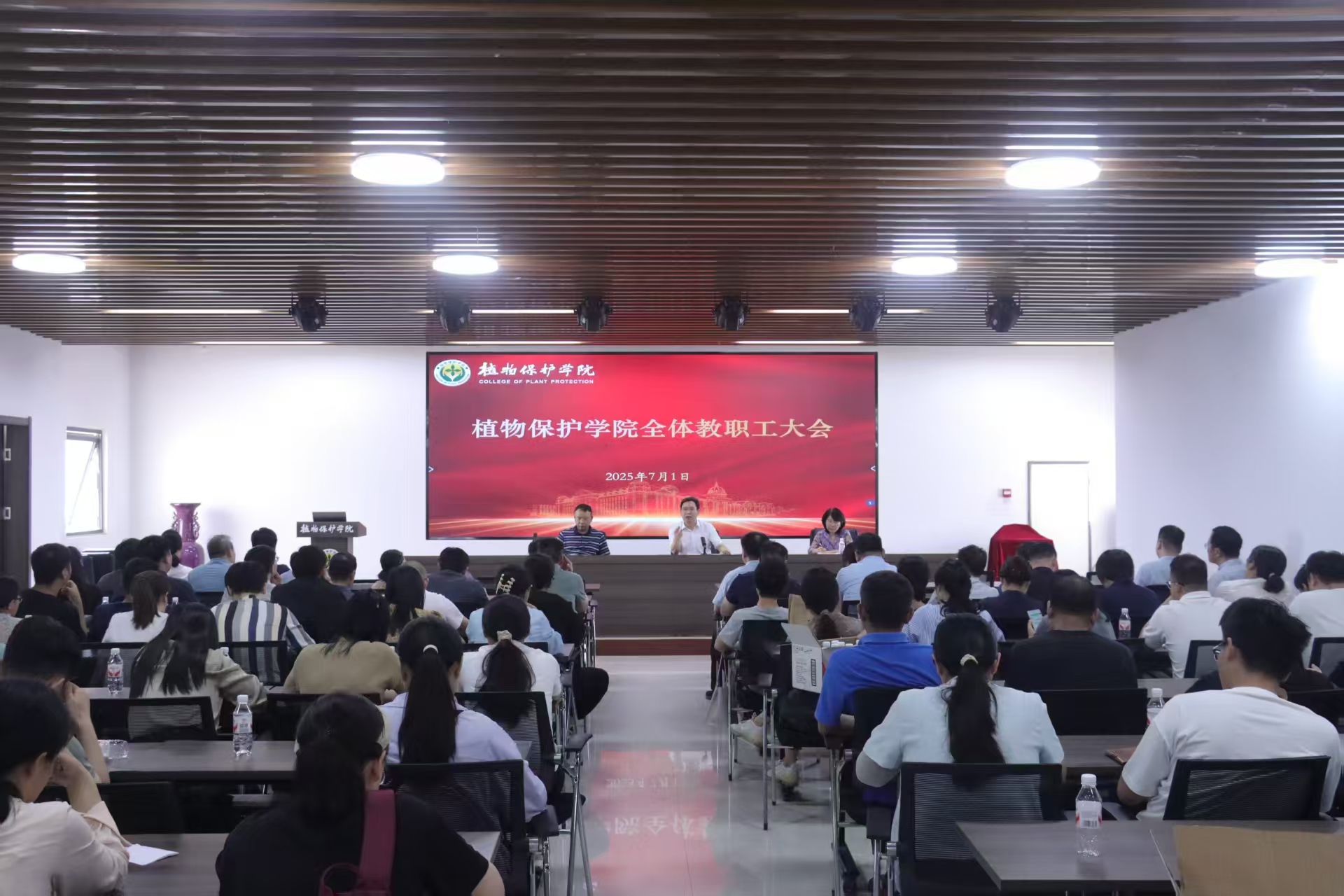 领导班子及全体教职工参加会议,会议由院党委书记李国权主持。