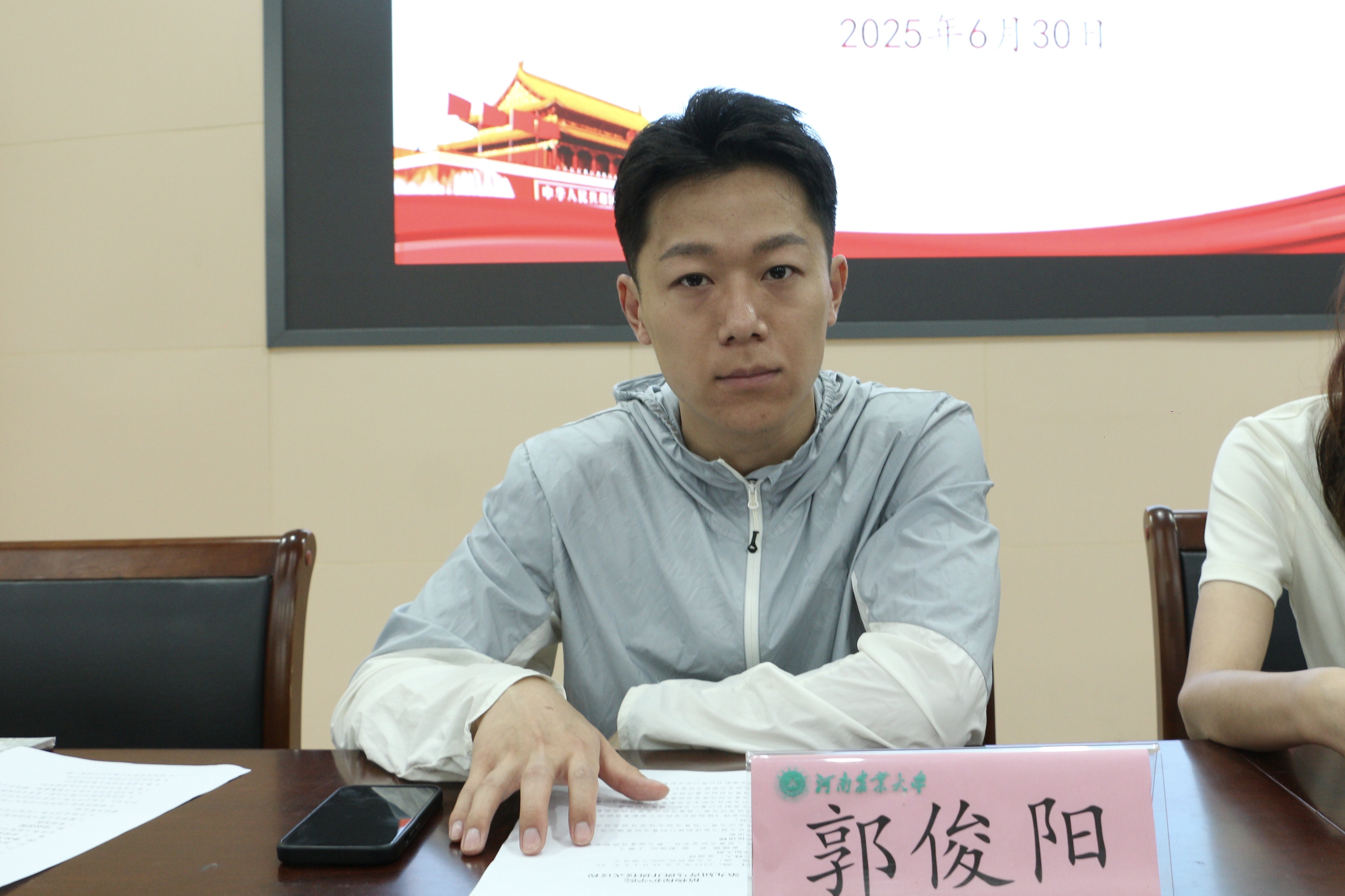 第九届青马班班长屠洪瑞发言,作为新一届青马班班长,将进一步坚定信仰,怀揣青马精神,以植保学子饱满的热情投身社会主义现代化建设,为乡村振兴注入青春力量。