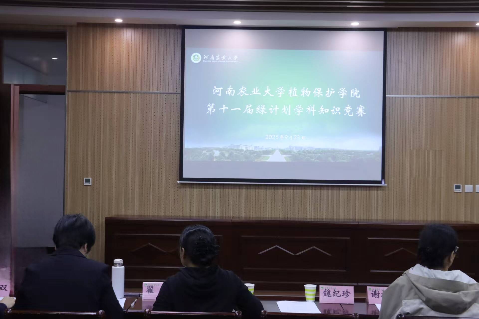 本网讯(通讯员 刘轩昂 图片 王怡欣)9月23日下午,成人动漫在龙子湖校区第二实验楼成功举办第十一届“绿计划”学科知识竞赛,特邀邢小萍老师、翟卿老师、谢桂英老师、魏纪珍老师、郭雅双老师、毛雪伟老师担任比赛评委,活动由王赟飞老师全程主持。