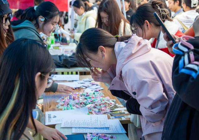 本网讯( 通讯员 代柠煜 图片 李依芃 员戈戈)11月11日下午,我校“社团嘉年华”活动热闹启幕。各大社团齐聚一堂、各展所长,以丰富多样的互动体验、精彩纷呈的特色活动,为25级新生搭建起结识同好、绽放青春活力的平台。现场人头攒动,欢声笑语不断,成人动漫明思读书社、益起爱青年志愿者协会、英语爱好者协会、绿社团、春华艺术团五大社团悉数亮相,凭借鲜明特色的活动收获满满人气。